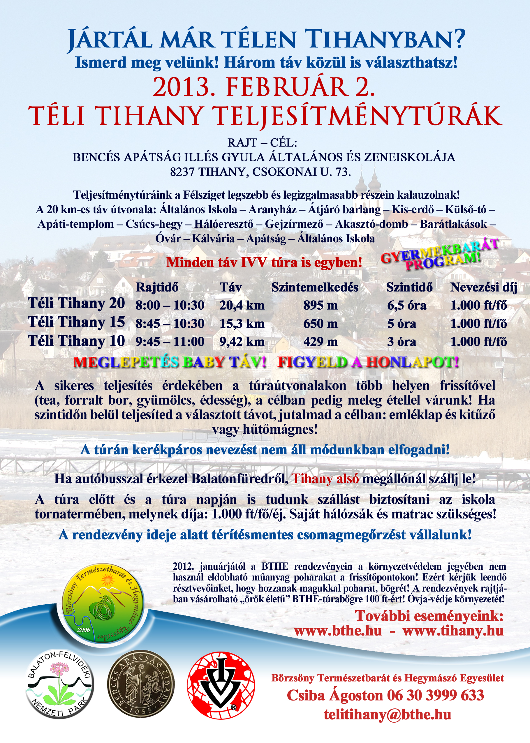 A BTHE, a rendezvényein a környezetvédelem jegyében nem használ eldobható műanyag poharakat a frissítőpontokon! Ezért kérjük leendő résztvevőinket, hogy hozzanak magukkal poharat, bögrét! A rendezvények rajtjában vásárolható „örök életű” BTHE-túrabögre 150 Ft-ért! Óvja-védje környezetét!