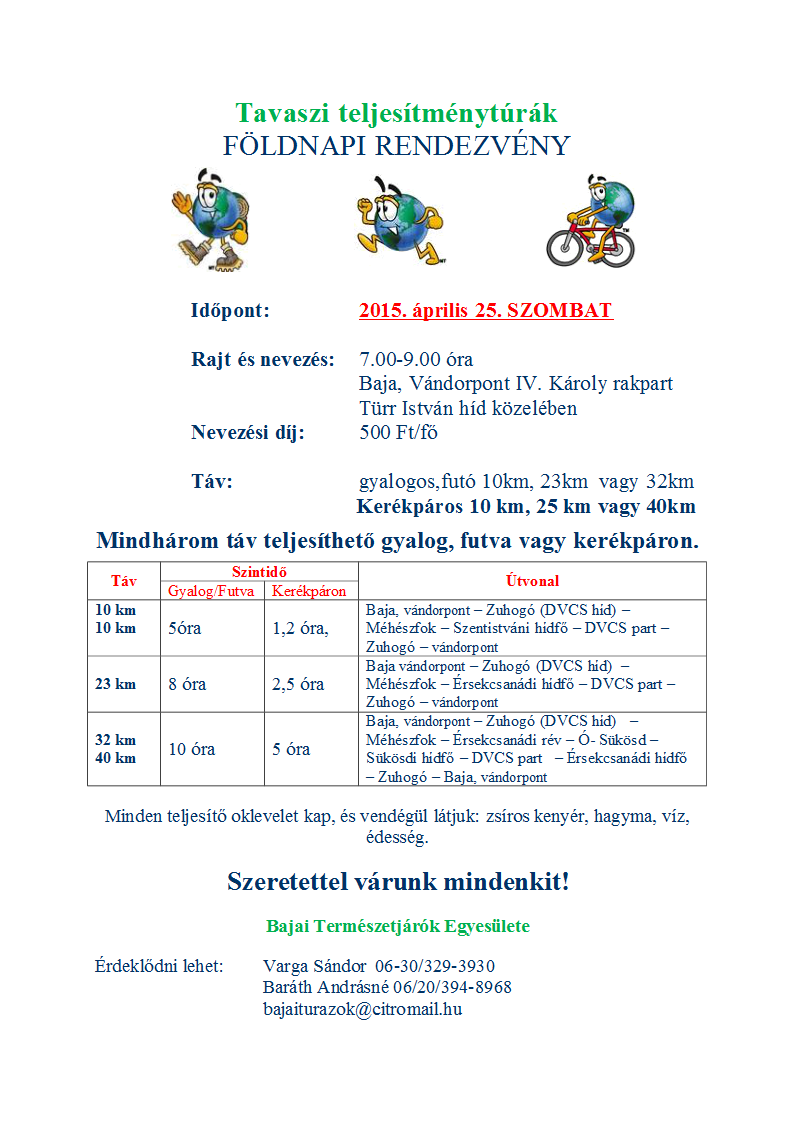 Minden távhoz: Figyelem! A rajt-cél helye változott! Vándorpont Baja. IV.Károly rakpart