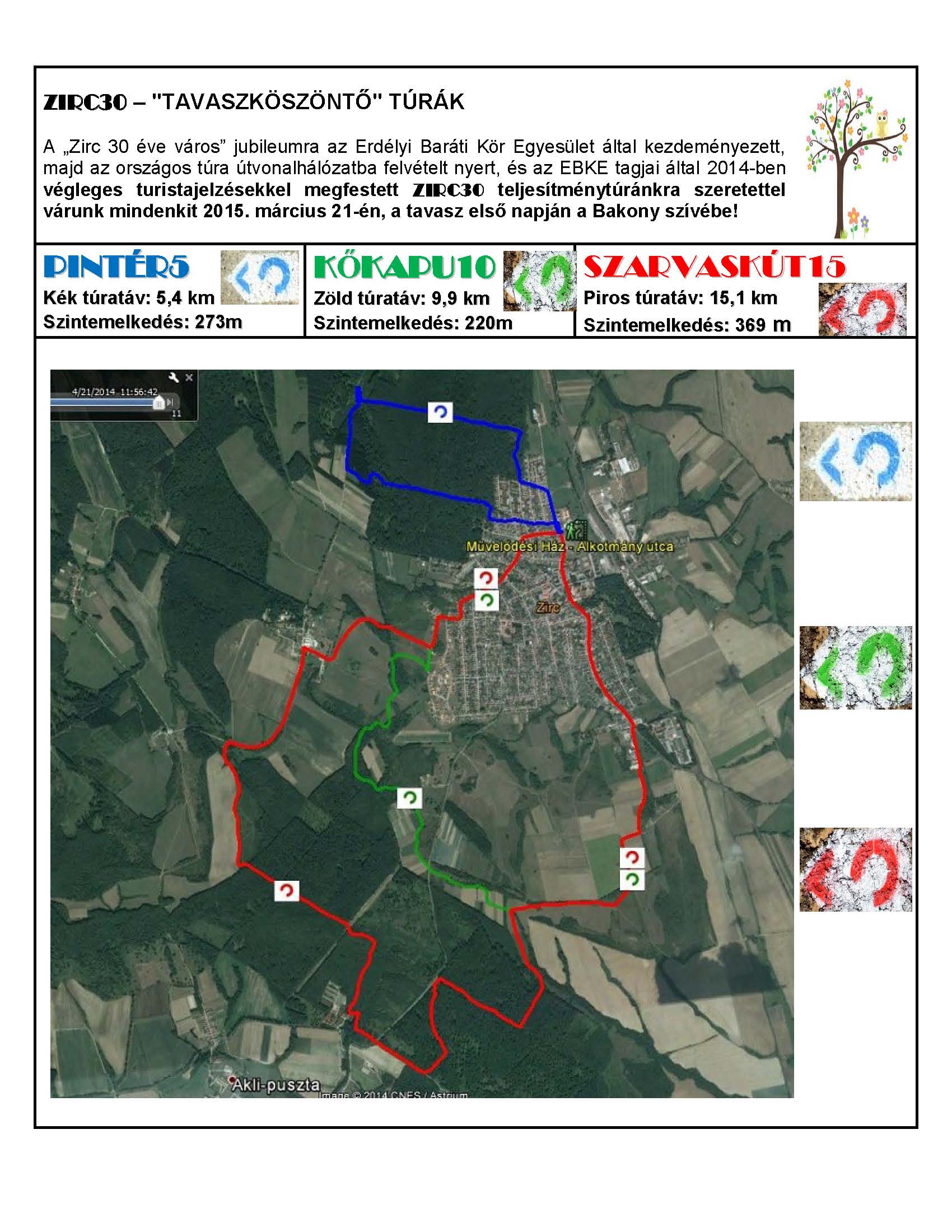 Az útvonalak a 2014-ben létesített kék-piros-zöld körséta turista útvonalak mentén haladnak.