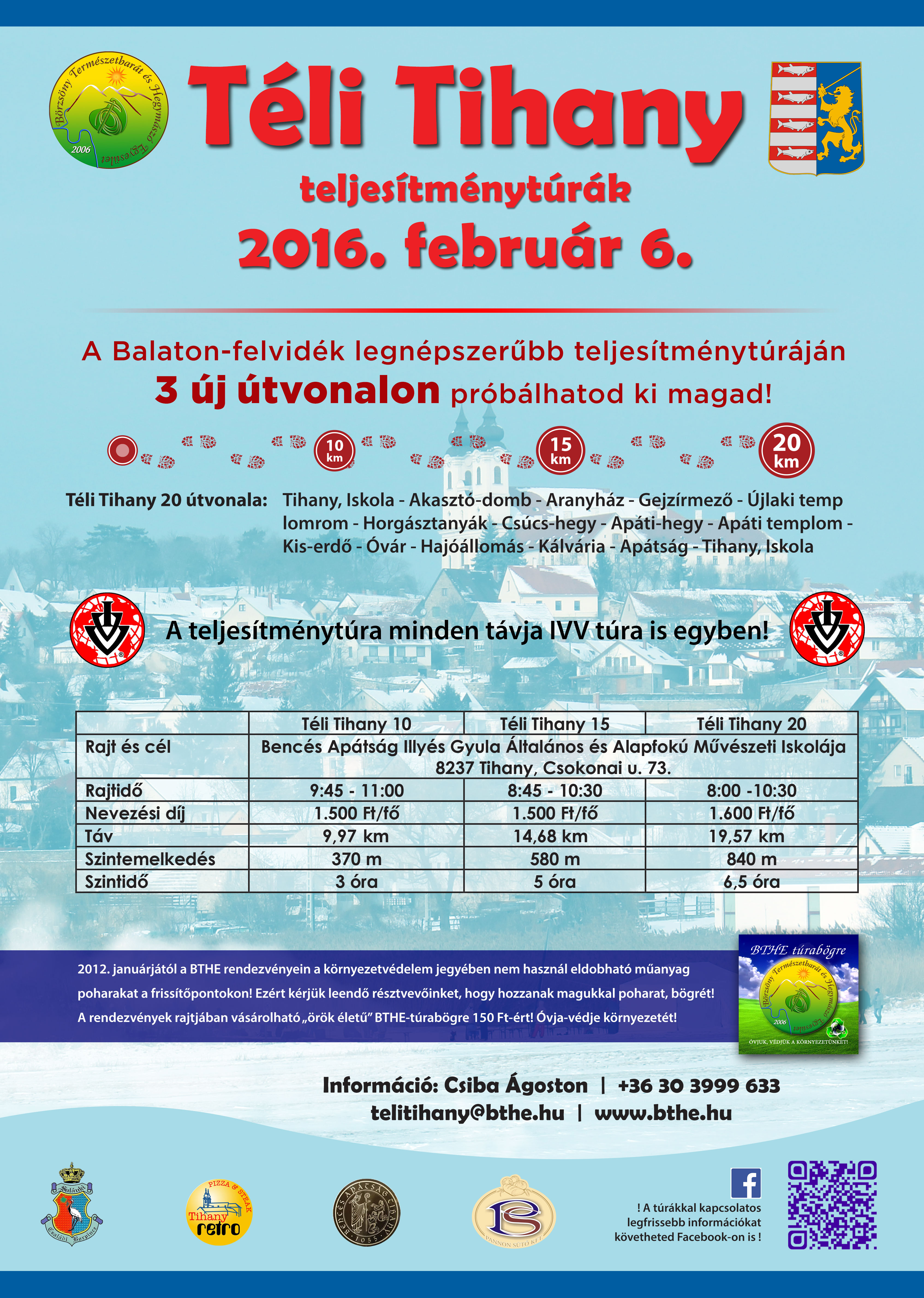 A www.bthe.hu nevezve és az egyesület bankszámlájára elutalva 500 ft/fő kedvezmény 2016. január 29-ig. 7 év alatti gyerekek nevezési díj fizetése nélkül vehetnek részt a túrán!