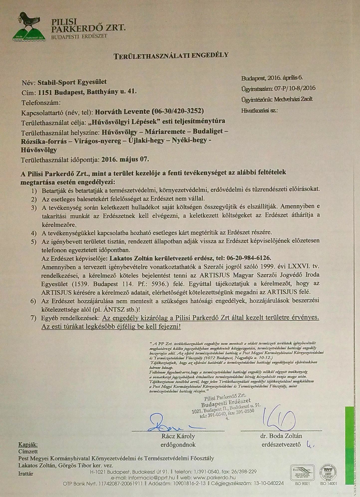 A Pilisi Parkerdő Zrt. erdészeti területhasználati engedélye (2016.)